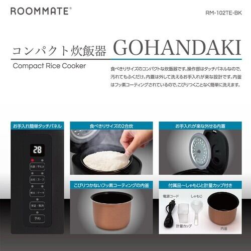 コンパクト炊飯器 GOHANDAKI RM-102TE 多機能炊飯器 2合 マイコン式 一人暮らし 早炊き お粥 スープ