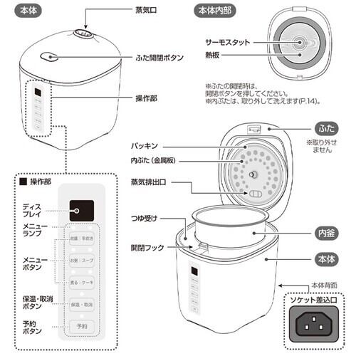 メニュー:炊飯・早炊き・お粥・スープ・煮る・ケーキ・保温