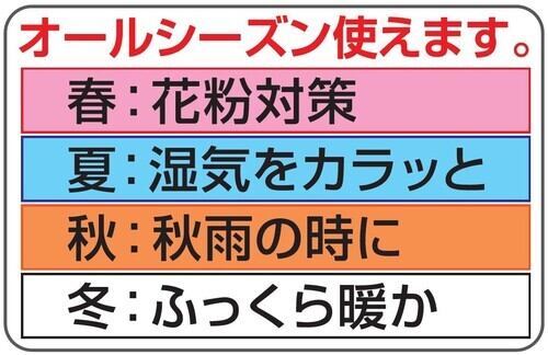 ●オールシーズン使えます。春:花粉対策、夏:湿気をカラッと、秋:秋雨の時に、冬:ふっくら暖か