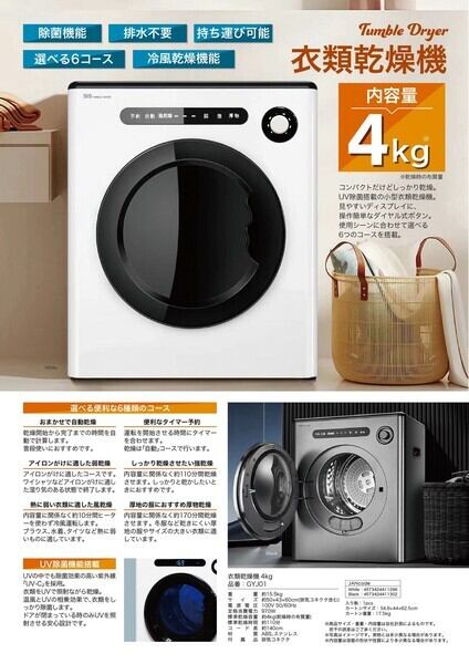 衣類乾燥機4kg【ホワイト】、【ブラック】 GYJ01