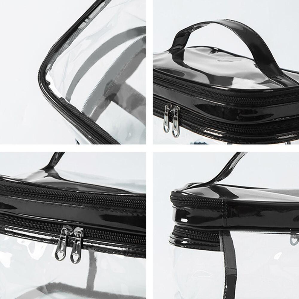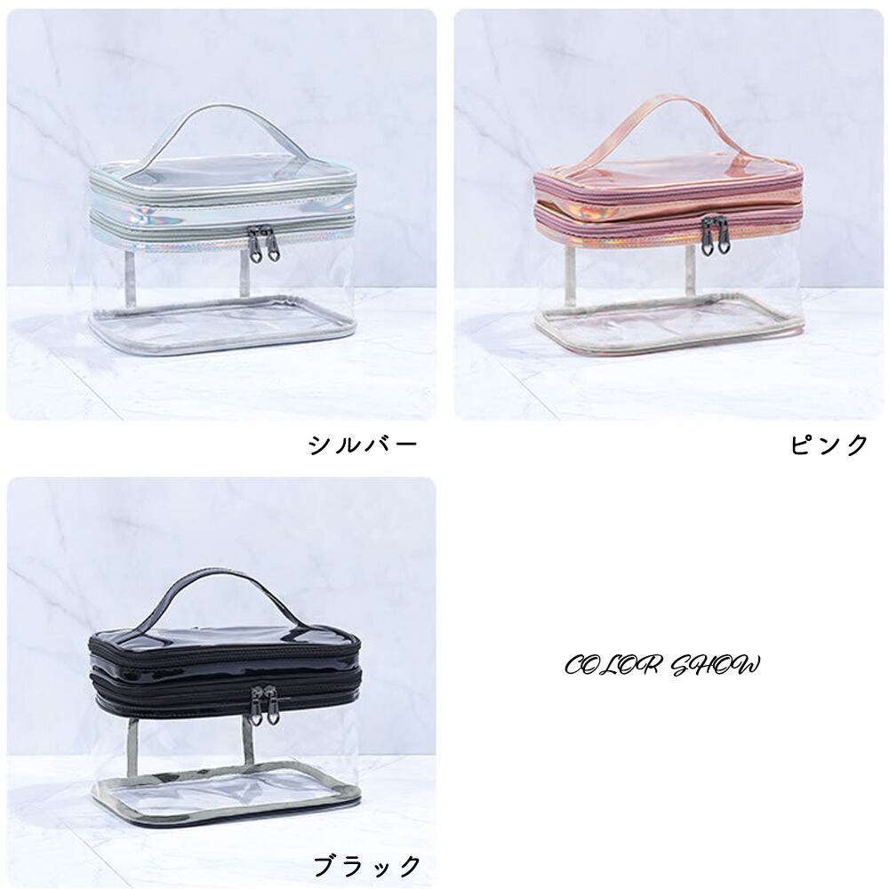 透明コスメポーチ ダブルファスナー 大容量 メイクアップ道具ボックス おしゃれ 小物収納 旅行 小型カバン 手持ちバッグ