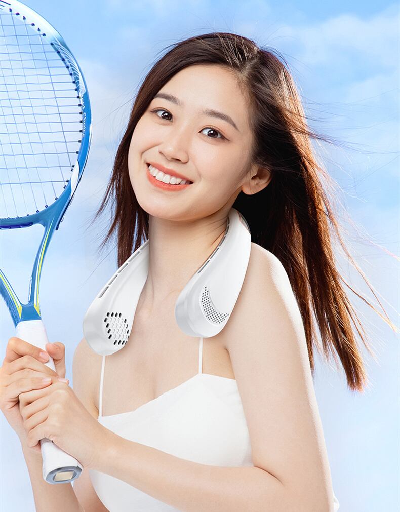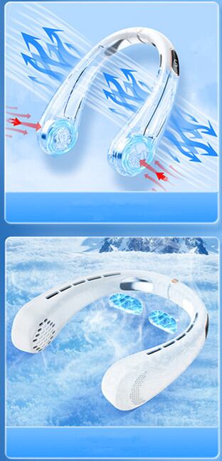 電動扇風機 首掛け 携帯扇風機 風量3段階調節 USB充電機能付き
