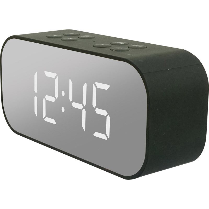 Bluetooth対応ワイヤレススピーカーにアラーム時計を搭載。・前面鏡面仕上げ・5Wの出力スピーカーはmicroSDカードにも対応、mp3ミュージックプレイヤーとしても使用可。・電話着信機能付きですのでハンズフリー会話もできます。・アラームは2つ設定可能で、スヌーズ機能付き。・容量/2000mAh